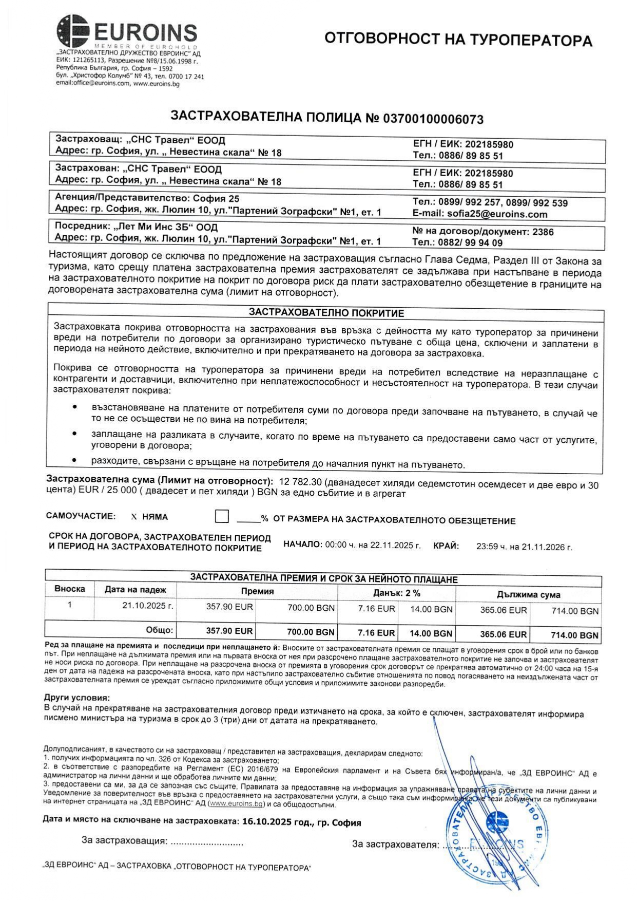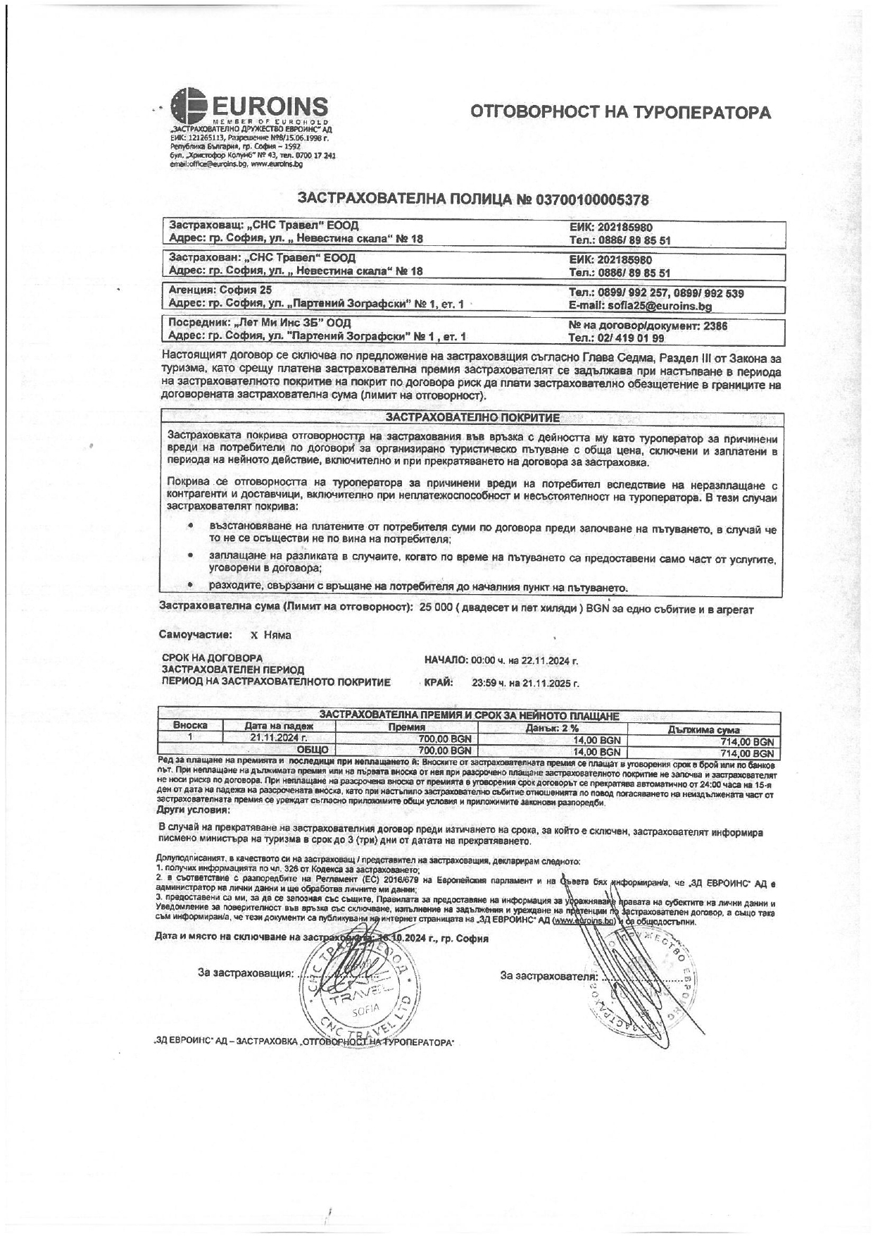 Застраховка на туроператор